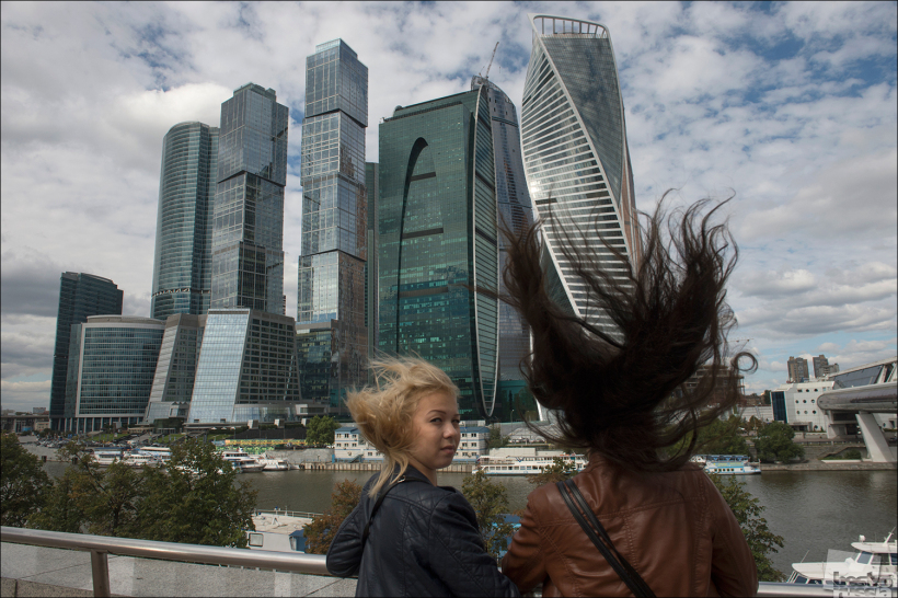 Москва. Отдыхающие около столичного района Сити.