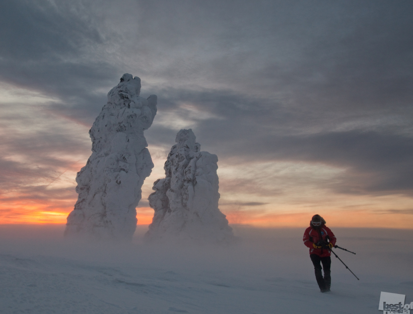 Десять секунд - и пальцы без перчаток превращаются в карандаши. Пять секунд - и объектив залеплен снегом. И сколько ни считай, как в море при попытке поймать девятый вал, в метели промежутка нет. А с каждой минутой ветер усиливается, словно испытывает тебя на прочность. Плато Мань-Пупу-нёр, Печоро-Илычский заповедник.