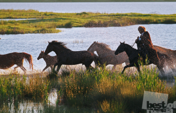 Встали в 5 утра, чтобы снять, как пастух перегоняет табун в заливе реки Большой Зеленчук.