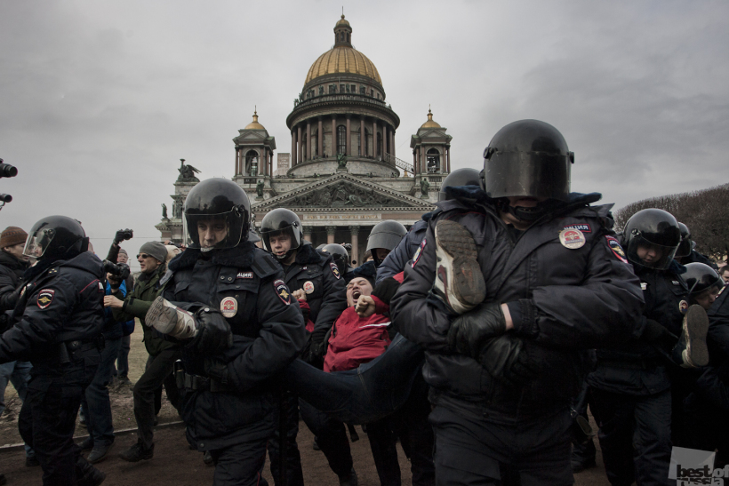 Информационно-пропагандистская истерия против России в этом конкурсе достигла своего апогея. На Исаакиевской площади 2 марта 2014 года действительно проходил несанкционированный митинг против возможного введения Российских войск на Украину, организованный и финансируемый депутатом Законодательного собрания Санкт-Петербурга Максимом Резником. Ему удалось собрать лишь около 1000 митингующих. В это время Крым ещё даже не мечтал восстановить родственные связи с Россией, а некоторые подкупленные жители северной столицы были уже против этого.