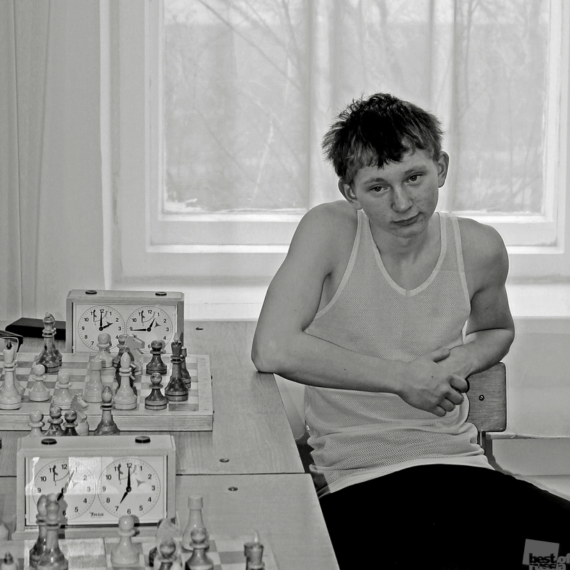 Юный шахматист обдумывает партию на занятиях в камышинской школе шахмат.
