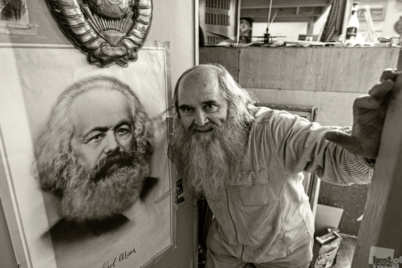 Председатель клуба ветеранов-художников Лысов Илья Иванович с портретом Карла Маркса