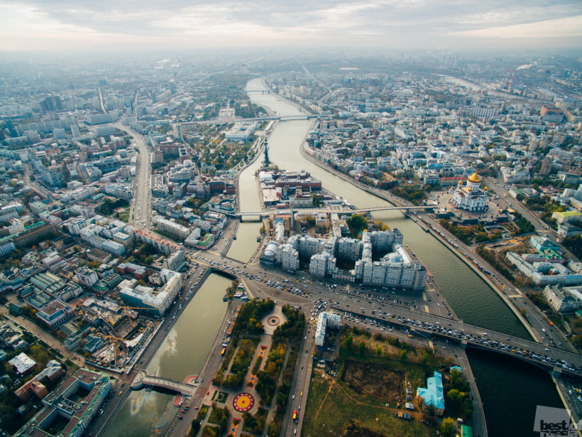 Вид на Водоотводный канал, улицу Большая Полянка, Храм Христа Спасителя и Лаврушинский переулок. /Наталья Гарнелис